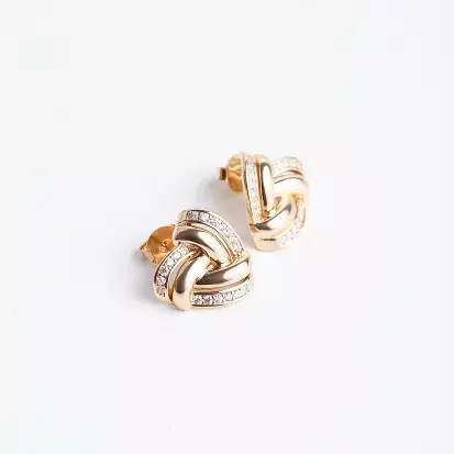 Brinco coração entrelaçado liso e cravejado com micro zircônias com banho de alta qualidade em ouro 18K.