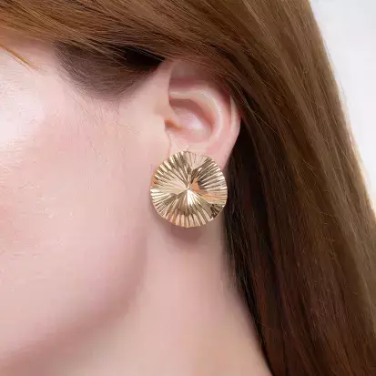 Brinco flor orgânica redonda texturizada com banho de alta qualidade em ouro 18K.