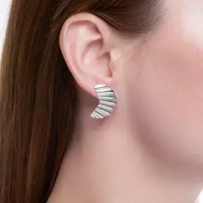 Brinco meia lua estilizada com banho de alta qualidade em ródio.