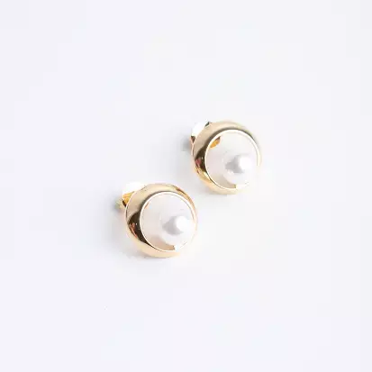 Brinco redondo vazado e pérola com banho de alta qualidade em ouro 18K.